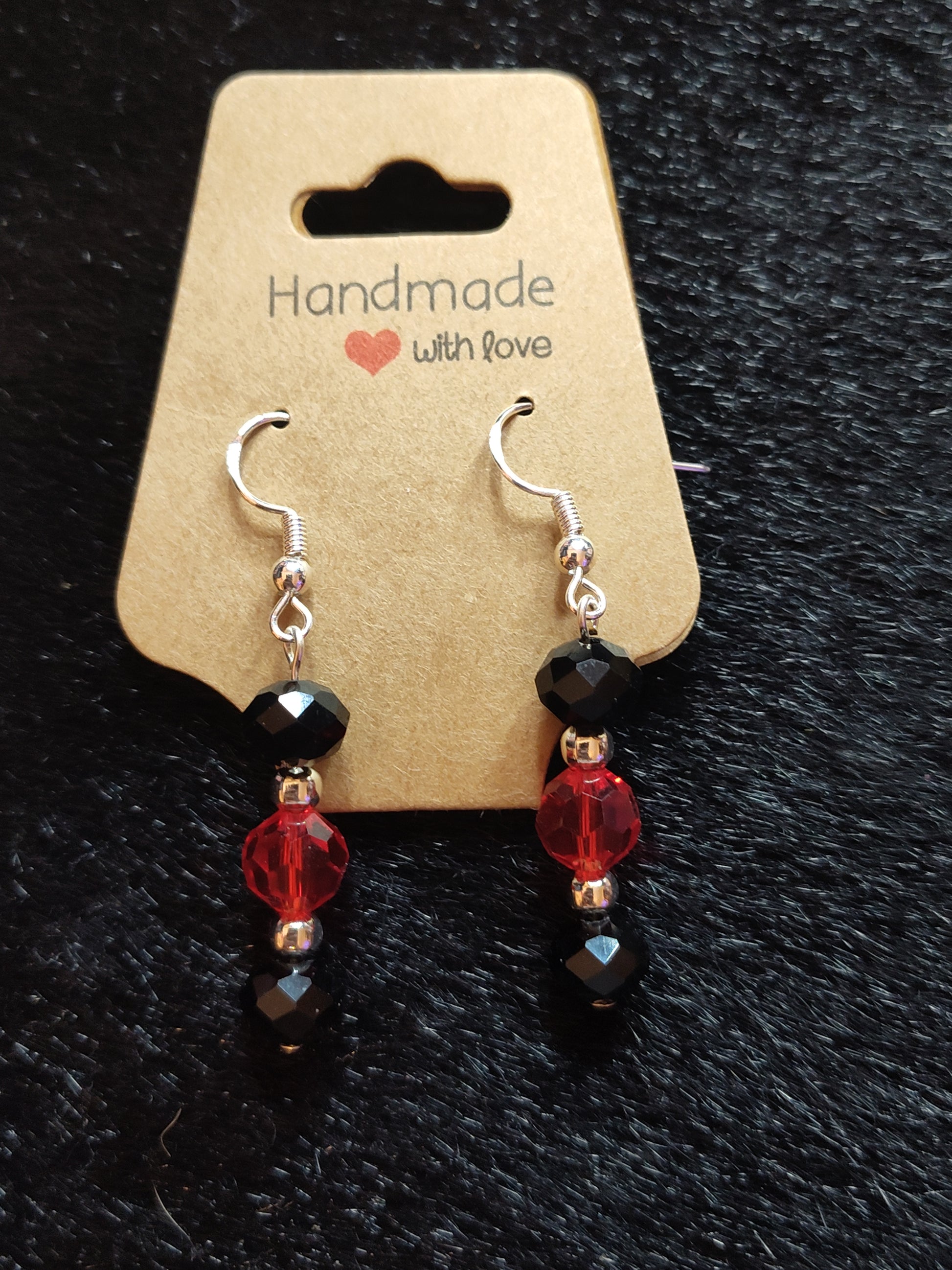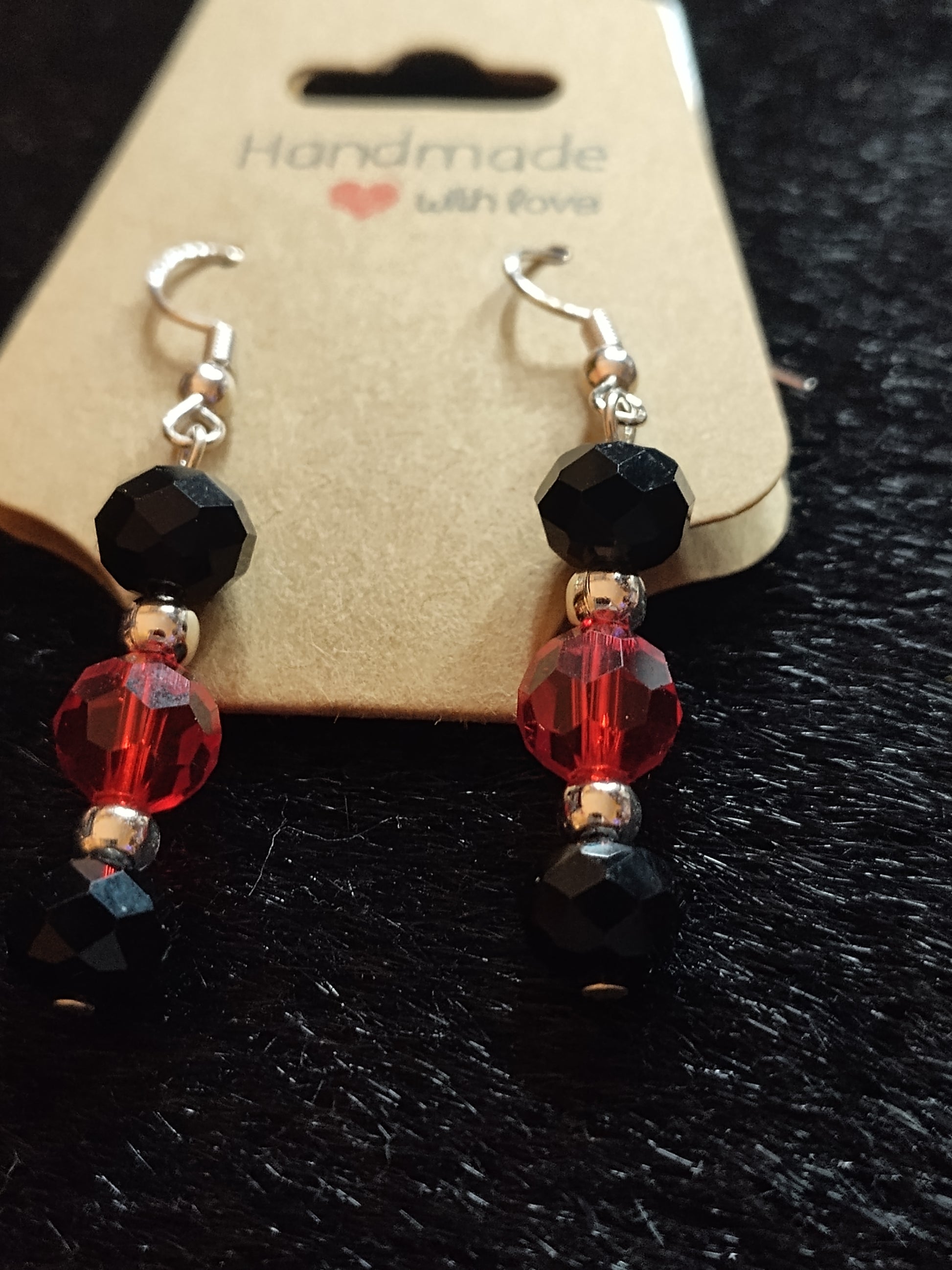 Invoke dark elegance with these handmade earrings featuring faceted black and red glass beads that catch the light like a spell in motion. Perfect for the witchy soul, vampire baddie, or anyone who thrives in the shadows.
